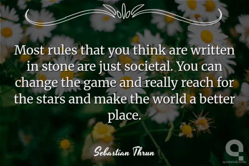 Most rules that you think are written in stone are just societal. You can change the game and really reach for the stars and make the world a better place.