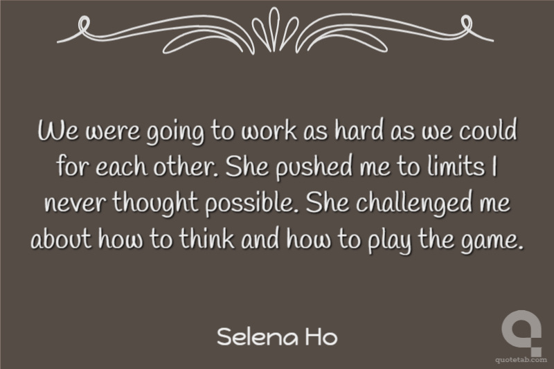 We were going to work as hard as we could for each other. She pushed me to limits I never thought possible. She challenged me about how to think and how to play the game.