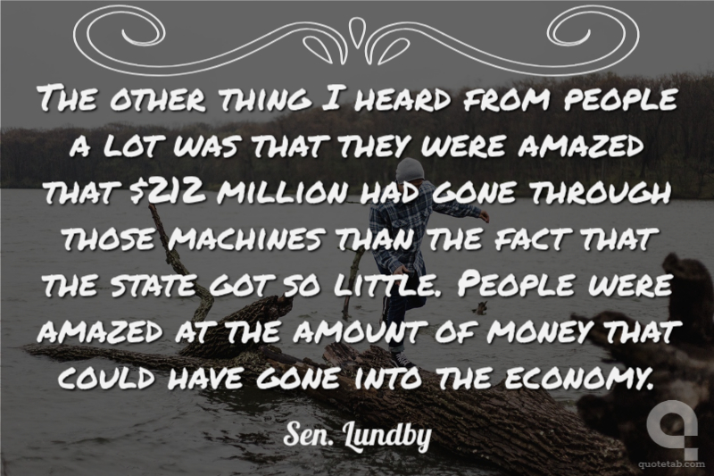 The other thing I heard from people a lot was that they were amazed that $212 million had gone through those machines than the fact that the state got so little. People were amazed at the amount of money that could have gone into the economy.