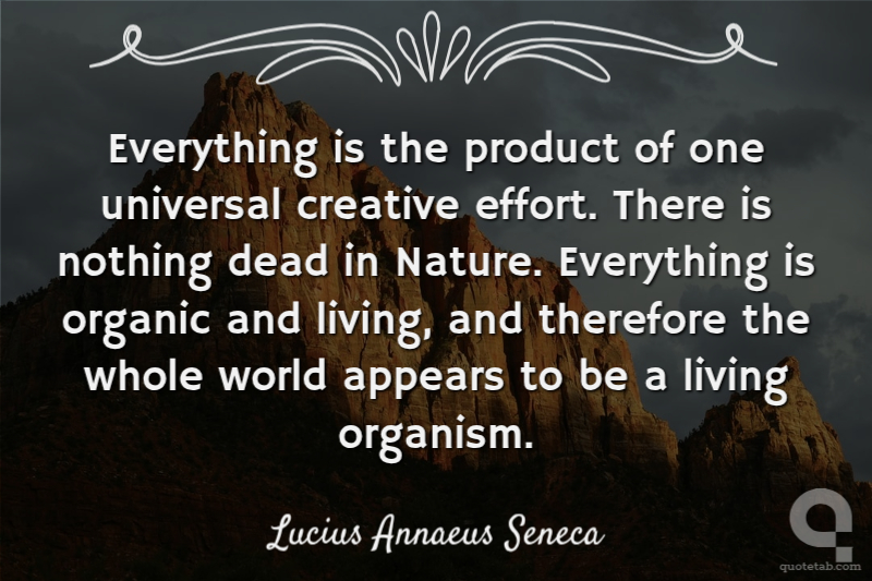 Everything is the product of one universal creative effort. There is nothing dead in Nature. Everything is organic and living, and therefore the whole world appears to be a living organism.