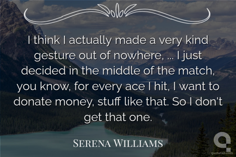 I think I actually made a very kind gesture out of nowhere, ... I just decided in the middle of the match, you know, for every ace I hit, I want to donate money, stuff like that. So I don't get that one.