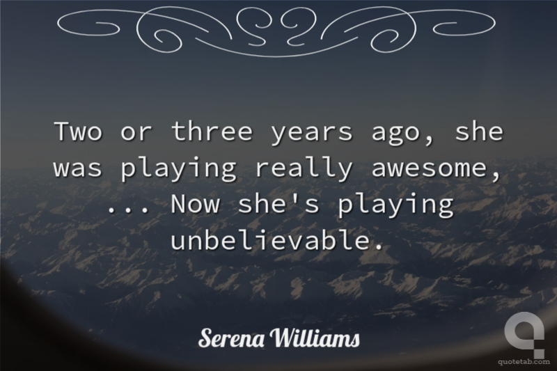 Two or three years ago, she was playing really awesome, ... Now she's playing unbelievable.