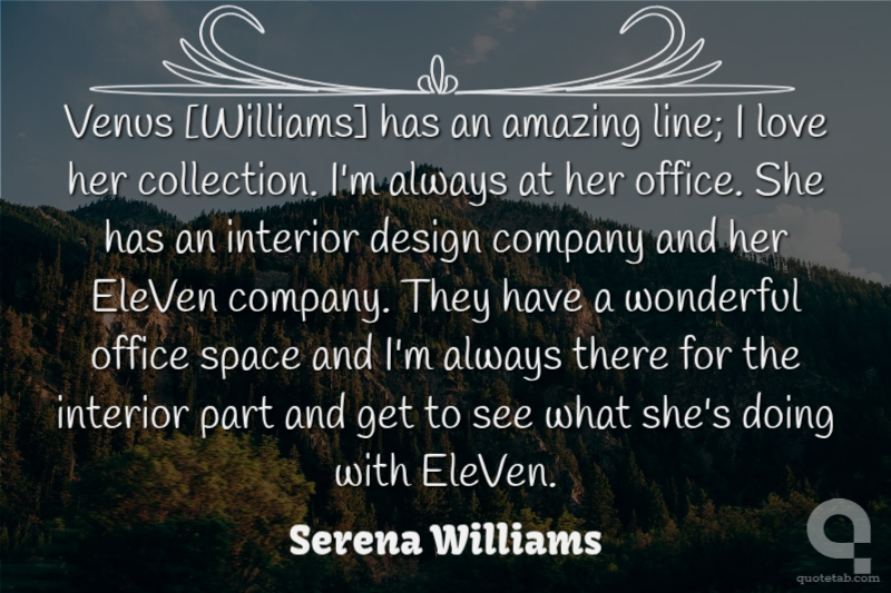 Venus [Williams] has an amazing line; I love her collection. I'm always at her office. She has an interior design company and her EleVen company. They have a wonderful office space and I'm always there for the interior part and get to see what she's doing with EleVen.