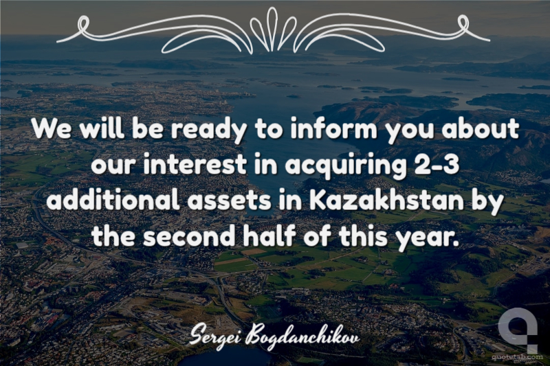 We will be ready to inform you about our interest in acquiring 2-3 additional assets in Kazakhstan by the second half of this year.