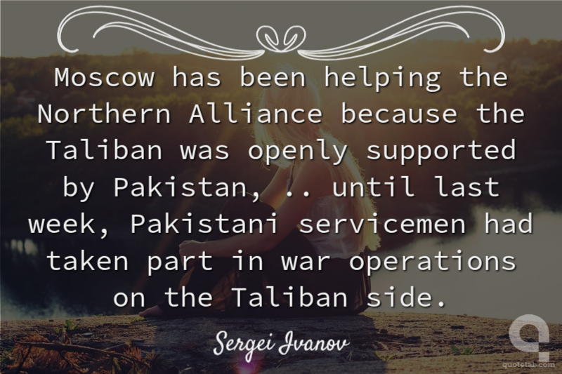 Moscow has been helping the Northern Alliance because the Taliban was openly supported by Pakistan, .. until last week, Pakistani servicemen had taken part in war operations on the Taliban side.