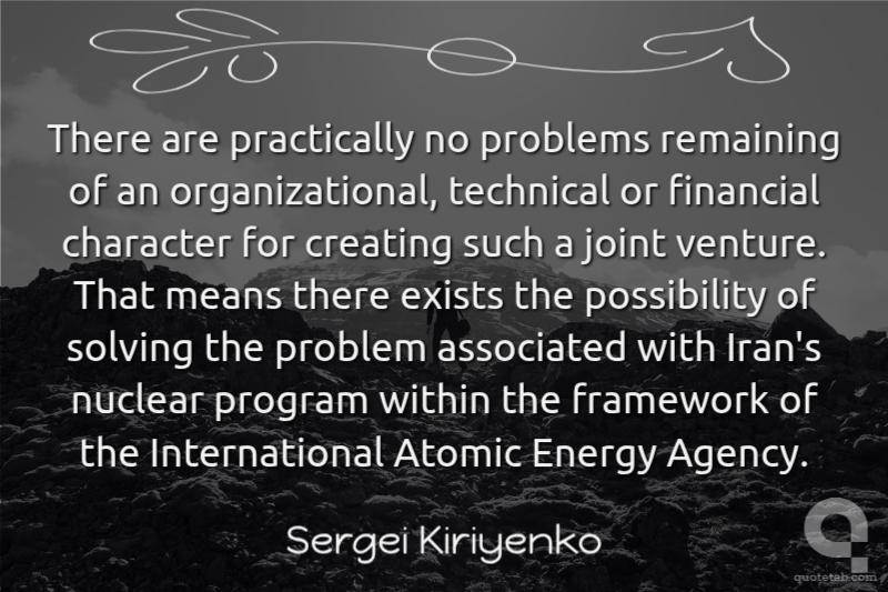 There are practically no problems remaining of an organizational, technical or financial character for creating such a joint venture. That means there exists the possibility of solving the problem associated with Iran's nuclear program within the framework of the International Atomic Energy Agency.