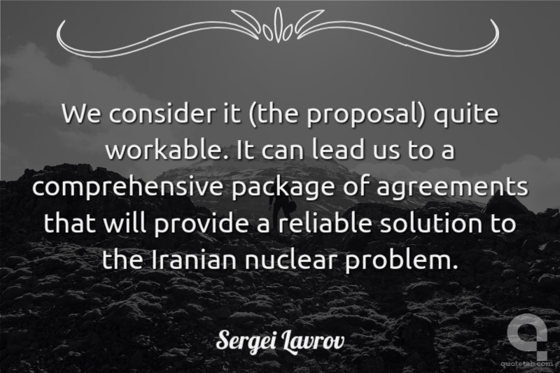 We consider it (the proposal) quite workable. It can lead us to a comprehensive package of agreements that will provide a reliable solution to the Iranian nuclear problem.