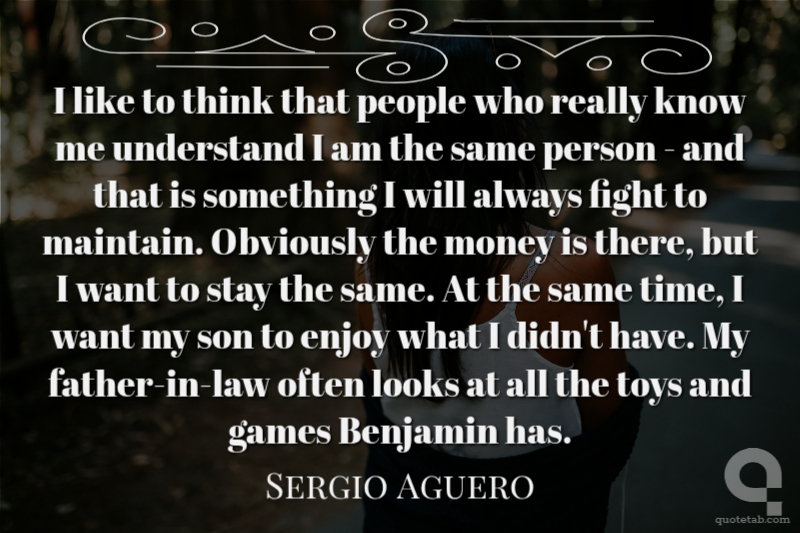 I like to think that people who really know me understand I am the same person - and that is something I will always fight to maintain. Obviously the money is there, but I want to stay the same. At the same time, I want my son to enjoy what I didn't have. My father-in-law often looks at all the toys and games Benjamin has.