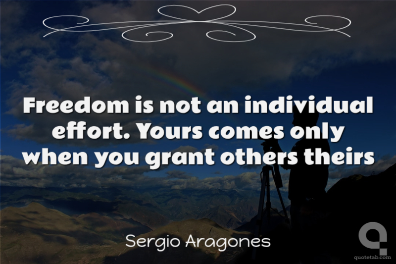 Freedom is not an individual effort. Yours comes only when you grant others theirs