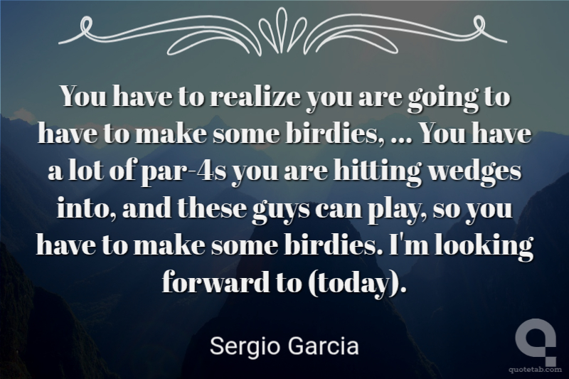 You have to realize you are going to have to make some birdies, ... You have a lot of par-4s you are hitting wedges into, and these guys can play, so you have to make some birdies. I'm looking forward to (today).