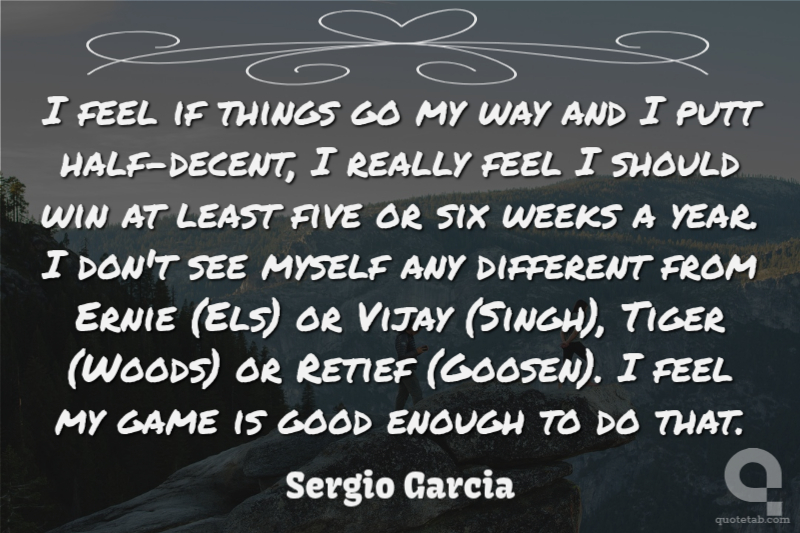 I feel if things go my way and I putt half-decent, I really feel I should win at least five or six weeks a year. I don't see myself any different from Ernie (Els) or Vijay (Singh), Tiger (Woods) or Retief (Goosen). I feel my game is good enough to do that.