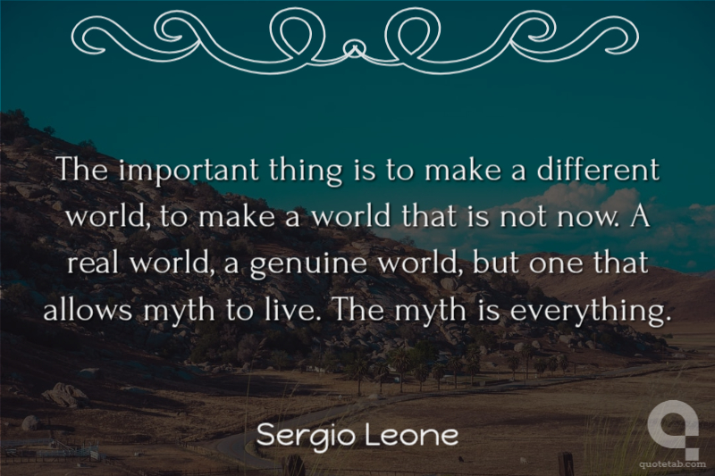 The important thing is to make a different world, to make a world that is not now. A real world, a genuine world, but one that allows myth to live. The myth is everything.