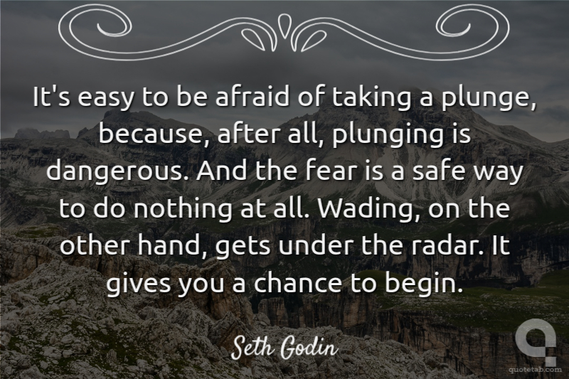 It's easy to be afraid of taking a plunge, because, after all, plunging is dangerous. And the fear is a safe way to do nothing at all. Wading, on the other hand, gets under the radar. It gives you a chance to begin.