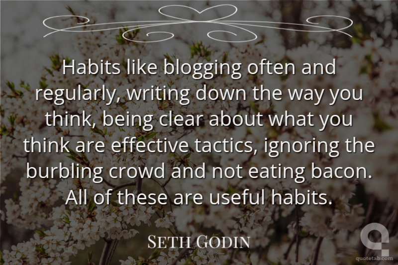 Habits like blogging often and regularly, writing down the way you think, being clear about what you think are effective tactics, ignoring the burbling crowd and not eating bacon. All of these are useful habits.