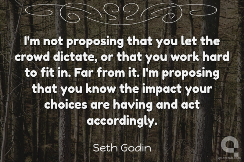 I'm not proposing that you let the crowd dictate, or that you work hard to fit in. Far from it. I'm proposing that you know the impact your choices are having and act accordingly.