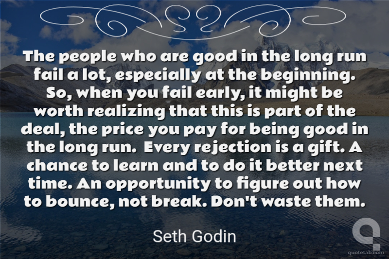 The people who are good in the long run fail a lot, especially at the beginning. So, when you fail early, it might be worth realizing that this is part of the deal, the price you pay for being good in the long run. Every rejection is a gift. A chance to learn and to do it better next time. An opportunity to figure out how to bounce, not break. Don't waste them.