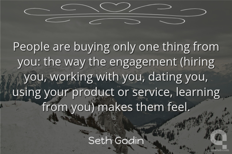 People are buying only one thing from you: the way the engagement (hiring you, working with you, dating you, using your product or service, learning from you) makes them feel.