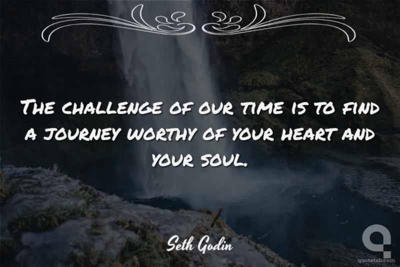 The challenge of our time is to find a journey worthy of your heart and your soul.