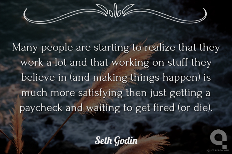 ...treasure what it means to do a day's work. It's our one and only chance to do something productive today, and it's certainly not available to someone merely because he is the high bidder. A day's work is your chance to do art, to create a gift, to do something that matters. As your work gets better and your art becomes more important, competition for your gifts will increase and you'll discover that you can be choosier about whom you give them to.