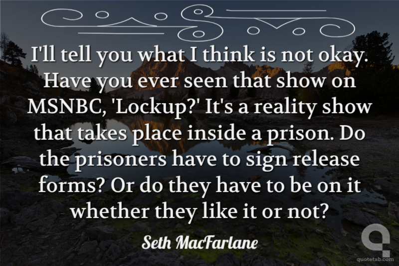 I'll tell you what I think is not okay. Have you ever seen that show on MSNBC, 'Lockup?' It's a reality show that takes place inside a prison. Do the prisoners have to sign release forms? Or do they have to be on it whether they like it or not?