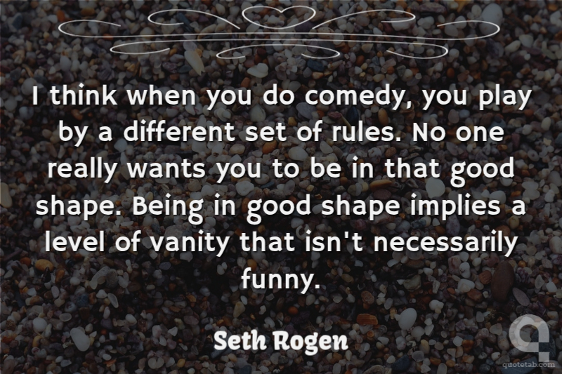 I think when you do comedy, you play by a different set of rules. No one really wants you to be in that good shape. Being in good shape implies a level of vanity that isn't necessarily funny.