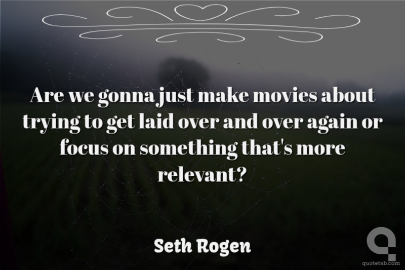 Are we gonna just make movies about trying to get laid over and over again or focus on something that's more relevant?