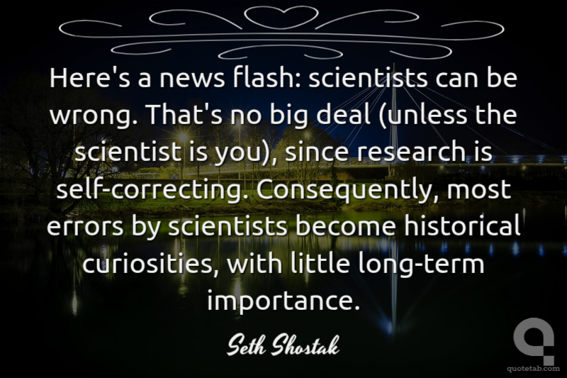Here's a news flash: scientists can be wrong. That's no big deal (unless the scientist is you), since research is self-correcting. Consequently, most errors by scientists become historical curiosities, with little long-term importance.