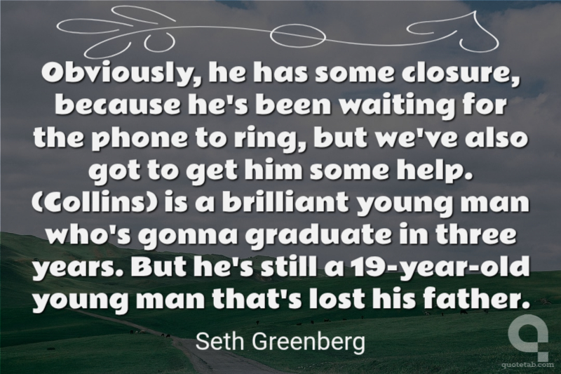 Obviously, he has some closure, because he's been waiting for the phone to ring, but we've also got to get him some help. (Collins) is a brilliant young man who's gonna graduate in three years. But he's still a 19-year-old young man that's lost his father.
