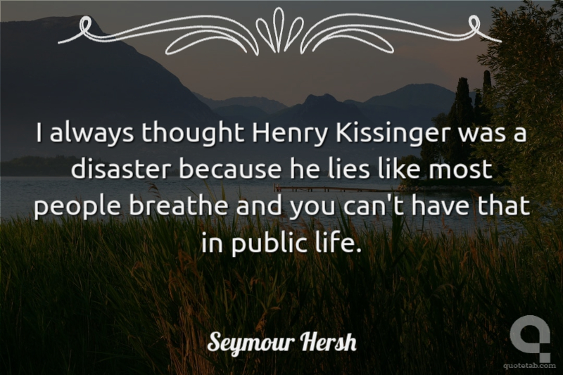 I always thought Henry Kissinger was a disaster because he lies like most people breathe and you can't have that in public life.