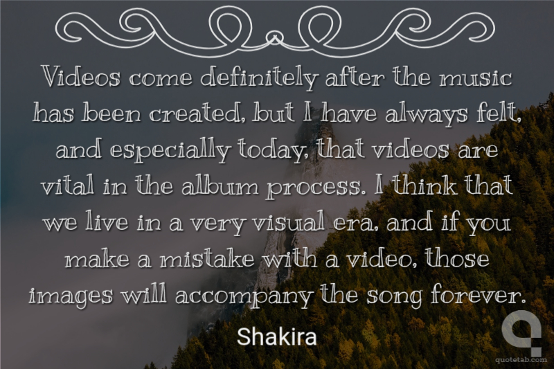 Videos come definitely after the music has been created, but I have always felt, and especially today, that videos are vital in the album process. I think that we live in a very visual era, and if you make a mistake with a video, those images will accompany the song forever.