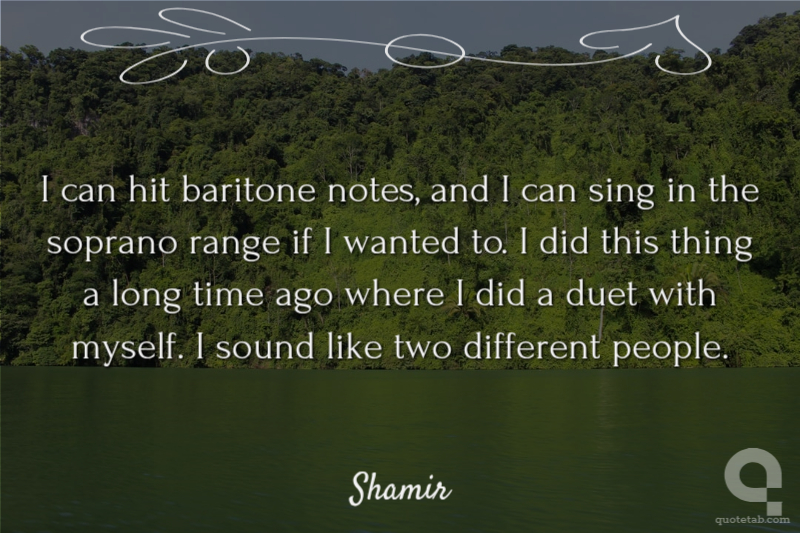 I can hit baritone notes, and I can sing in the soprano range if I wanted to. I did this thing a long time ago where I did a duet with myself. I sound like two different people.
