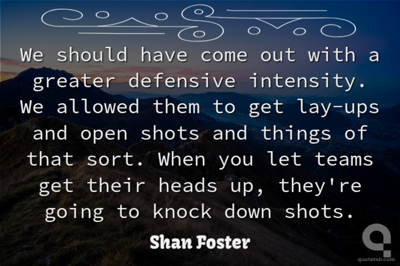 We should have come out with a greater defensive intensity. We allowed them to get lay-ups and open shots and things of that sort. When you let teams get their heads up, they're going to knock down shots.