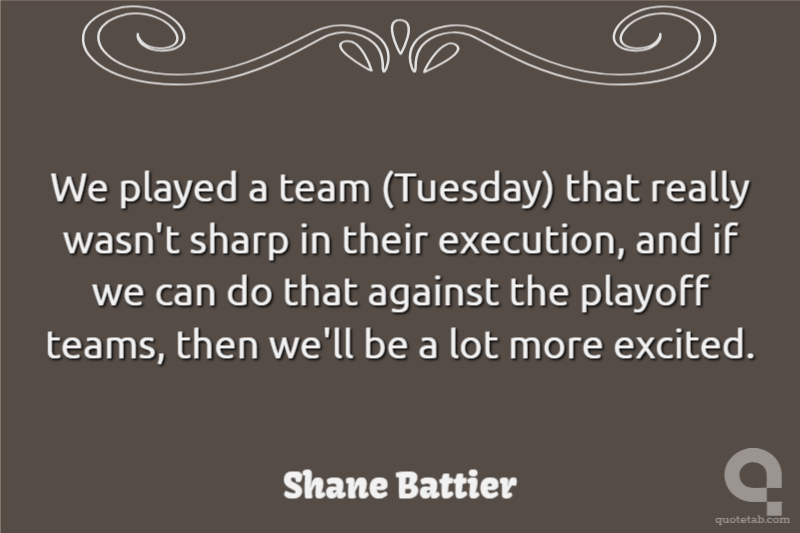 We played a team (Tuesday) that really wasn't sharp in their execution, and if we can do that against the playoff teams, then we'll be a lot more excited.