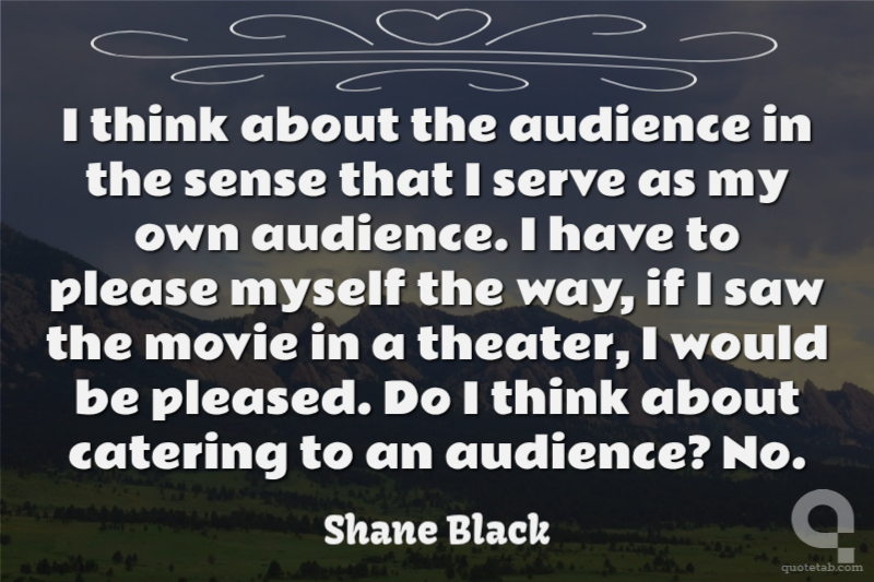 I think about the audience in the sense that I serve as my own audience. I have to please myself the way, if I saw the movie in a theater, I would be pleased. Do I think about catering to an audience? No.