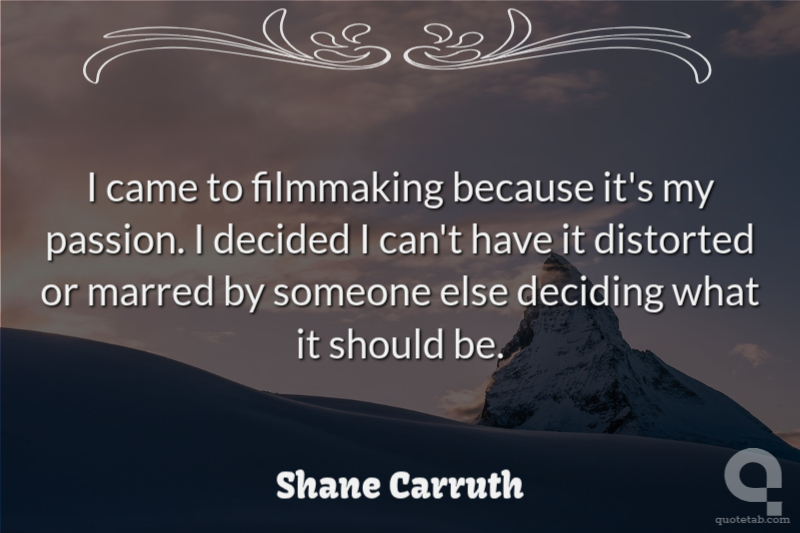 I came to filmmaking because it's my passion. I decided I can't have it distorted or marred by someone else deciding what it should be.