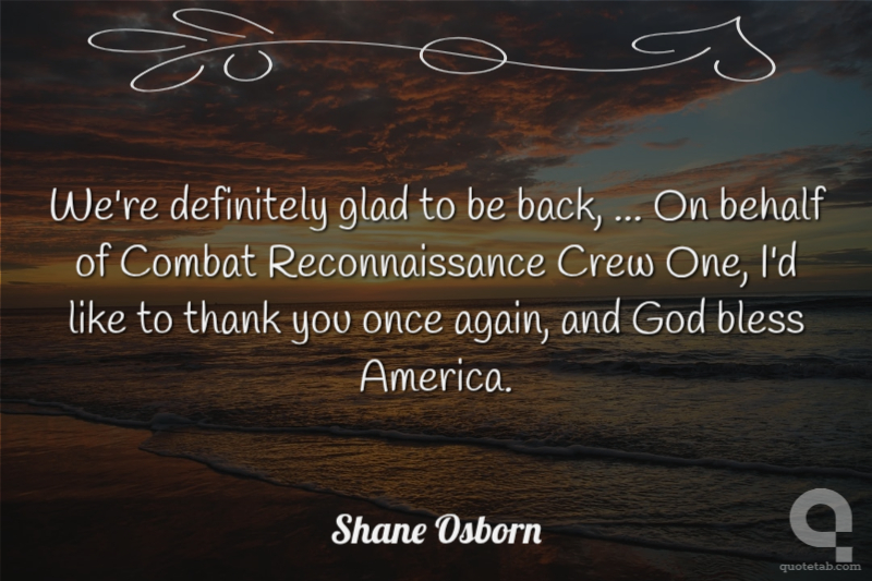We're definitely glad to be back, ... On behalf of Combat Reconnaissance Crew One, I'd like to thank you once again, and God bless America.