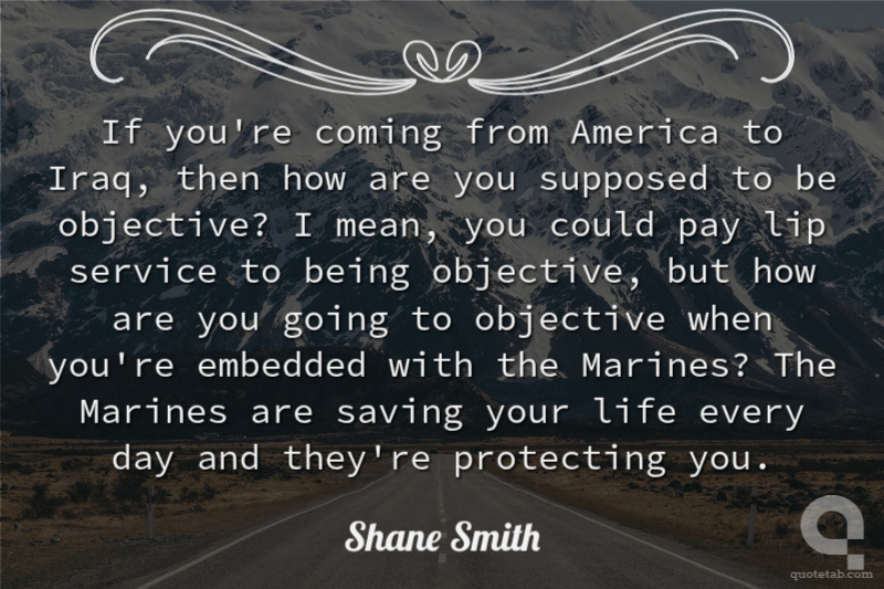 If you're coming from America to Iraq, then how are you supposed to be objective? I mean, you could pay lip service to being objective, but how are you going to objective when you're embedded with the Marines? The Marines are saving your life every day and they're protecting you.