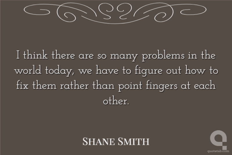 I think there are so many problems in the world today, we have to figure out how to fix them rather than point fingers at each other.