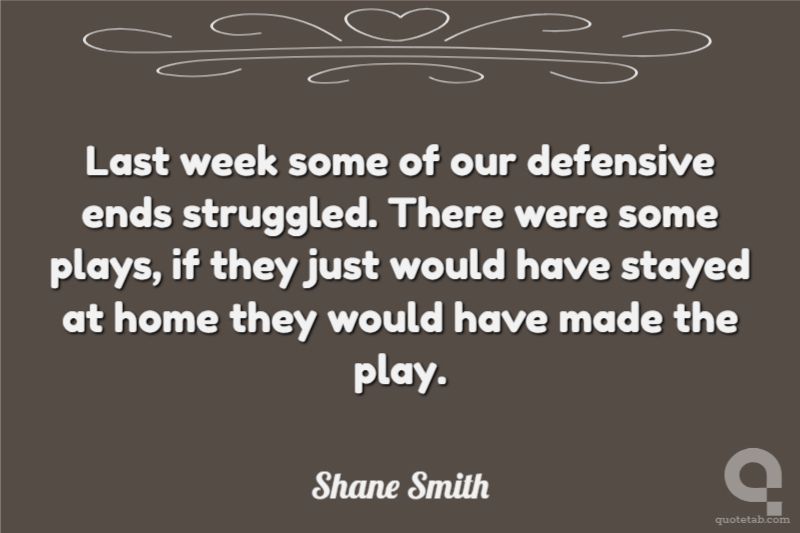 Last week some of our defensive ends struggled. There were some plays, if they just would have stayed at home they would have made the play.
