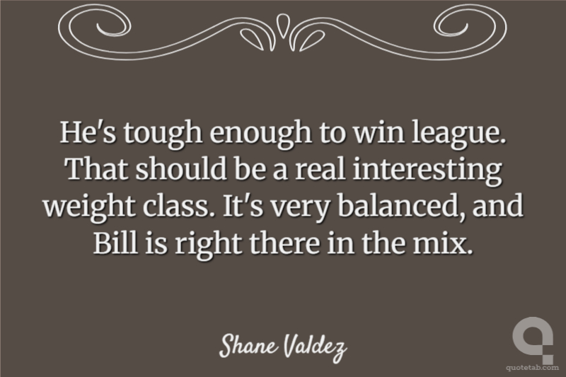 He's tough enough to win league. That should be a real interesting weight class. It's very balanced, and Bill is right there in the mix.