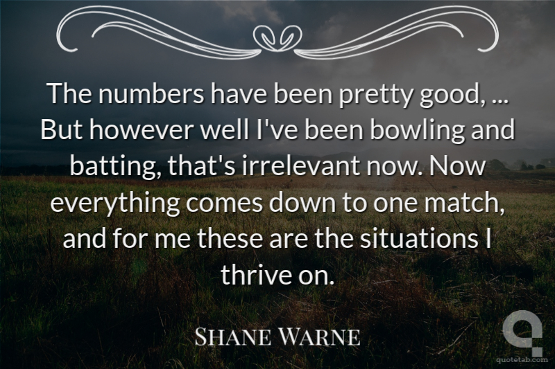 The numbers have been pretty good, ... But however well I've been bowling and batting, that's irrelevant now. Now everything comes down to one match, and for me these are the situations I thrive on.