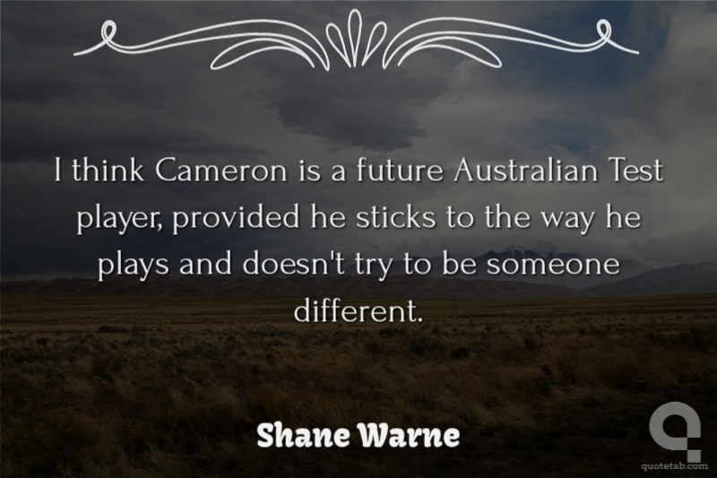 I think Cameron is a future Australian Test player, provided he sticks to the way he plays and doesn't try to be someone different.