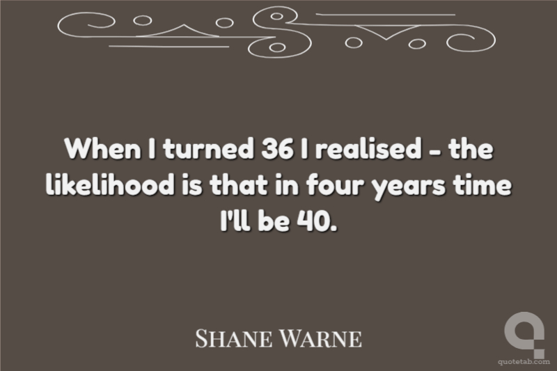 When I turned 36 I realised - the likelihood is that in four years time I'll be 40.