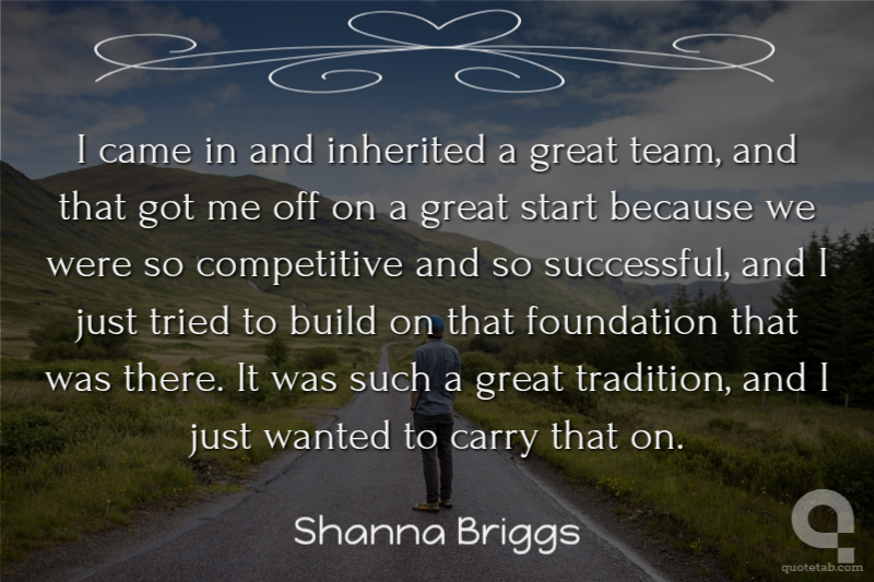 I came in and inherited a great team, and that got me off on a great start because we were so competitive and so successful, and I just tried to build on that foundation that was there. It was such a great tradition, and I just wanted to carry that on.