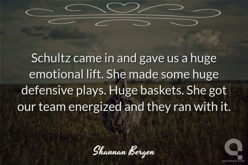 Schultz came in and gave us a huge emotional lift. She made some huge defensive plays. Huge baskets. She got our team energized and they ran with it.