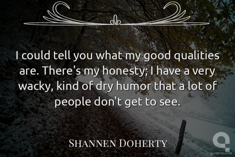 I could tell you what my good qualities are. There's my honesty; I have a very wacky, kind of dry humor that a lot of people don't get to see.