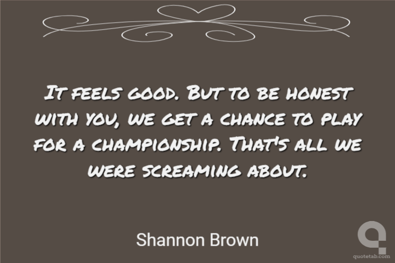 It feels good. But to be honest with you, we get a chance to play for a championship. That's all we were screaming about.
