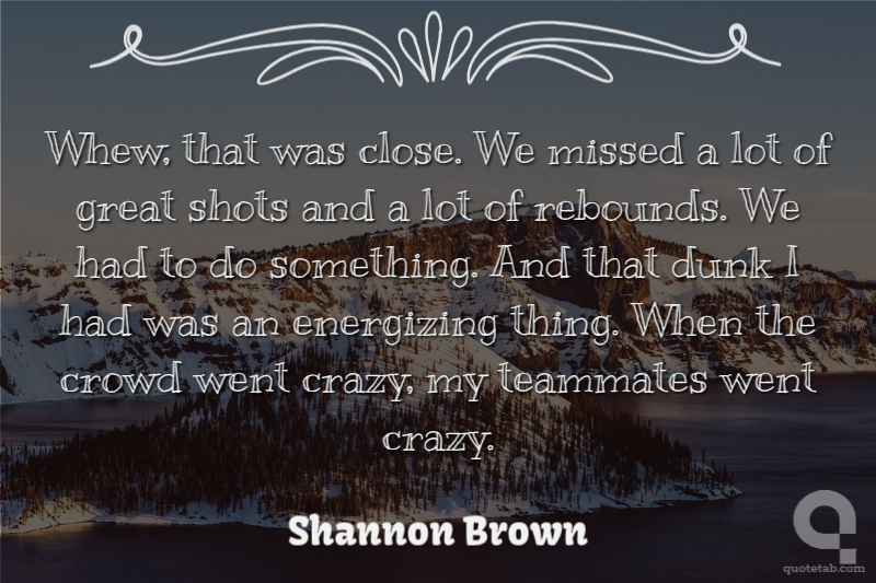 Whew, that was close. We missed a lot of great shots and a lot of rebounds. We had to do something. And that dunk I had was an energizing thing. When the crowd went crazy, my teammates went crazy.