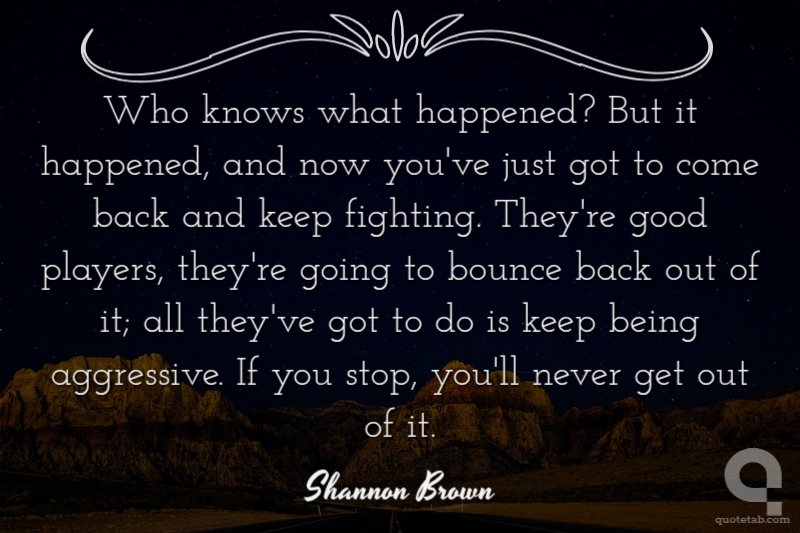 Who knows what happened? But it happened, and now you've just got to come back and keep fighting. They're good players, they're going to bounce back out of it; all they've got to do is keep being aggressive. If you stop, you'll never get out of it.