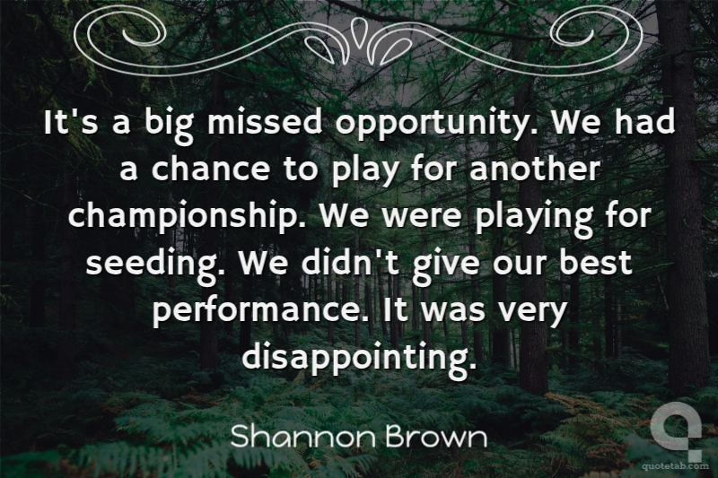 It's a big missed opportunity. We had a chance to play for another championship. We were playing for seeding. We didn't give our best performance. It was very disappointing.